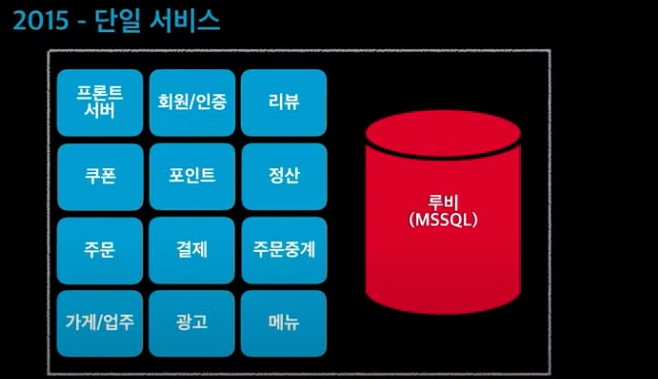 성공적으로 성장하는 회사들이 대부분 그렇듯 배달의 민족 주문수는 J커브를 그리면서 가파른 성장을 경험하였다. 2015년 서비스 출범 당시 하나의 프로젝트로 만들어졌던 배달의 민족은 더 이상 하나의 시스템, 하나의 데이터베이스 만으로 폭발적으로 늘어나는 트래픽을 감당하지 못한다.