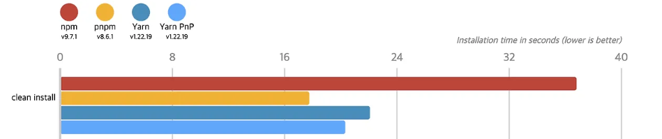 npm은 종속성 패키지를 설치할 때 순차적으로 설치하기 때문에 큰 파일을 설치할 때는 성능이 떨어진다. npm으로 설치한 node_module 폴더가 1~2GB를 압축되지 않은 상태로 차지하는 무거운 용량도 문제이다.