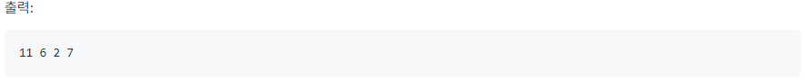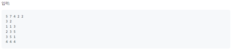 첫 번째 줄에 , , , , 가 공백을 사이에 두고 주어집니다.
