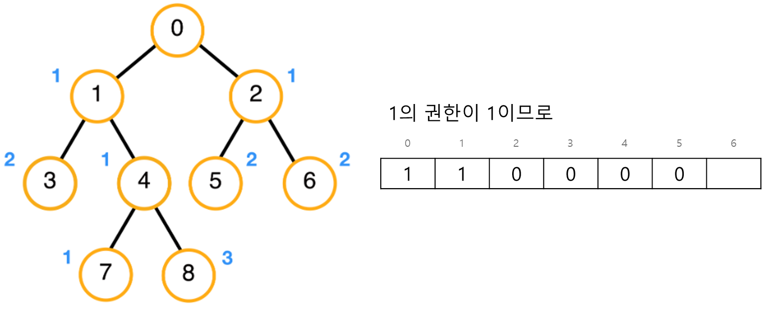 그 후 본인의 권한으로 상위 노드로 올려보낼 수 있는 만큼 배열에 1을 더해준다.