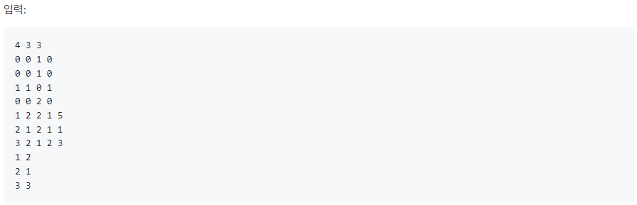 첫 번째 줄에 , , 가 공백을 사이에 두고 주어집니다.