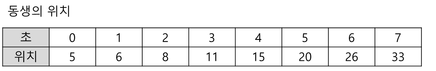 동생의 시간에 따른 움직임을 살펴보면 아래와 같이 움직인다.