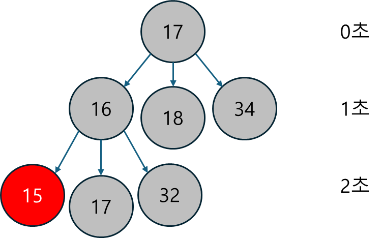 2초에 수빈이 15에 도달했다. 동생이 4초에 15에 도착하는 걸 미리 알았다면 아래와 같이 움직일 것이다.