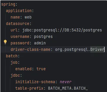 따라서, 수동으로 생성할 테이블의 schema를 포함한 table-prefix를 application.yaml에 적어주자. 필자의 경우 BATCH_META.BATCH_로 하였다.