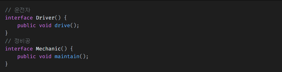 일반적인 인터페이스를 구체적인 여러 인터페이스로 나눈다면 객체지향 관점에서 더 좋은 설계이며 ISP를 고려한 설계가 된다.