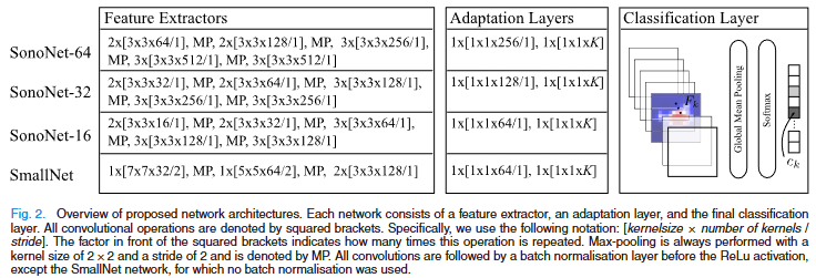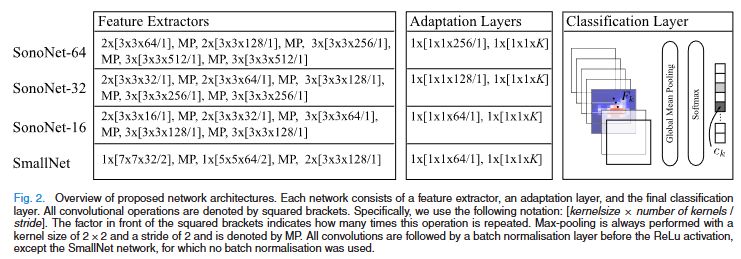 VGG16에서 영감을 받은 SonoNet 이외에도 alexNet에서 영감을 받아 파라미터 수가 훨씬 적은 더 간단한 네트워크 아키텍처인 SmallNet도 함께 개발하였다.