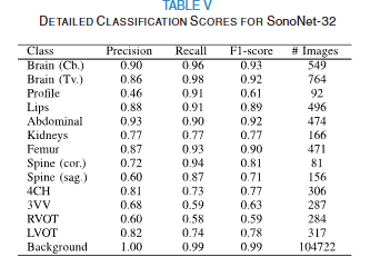 추가적으로 SonoNet-32는 forward pass만으로 25 fps 이상의 처리 속도를 기록해 실시간 초음파 장비에 적용 가능한 충분한 속도를 확보했다(실시간 영상화를 위한 문헌 상의 명시적인 합의는 없지만 일반적으로 사용되는 수치는 25 fps이다).