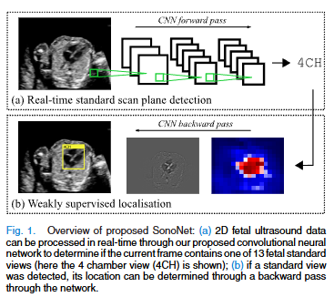 이를 해결하기 위해 연구진은 VGG16을 기반으로 완전합성곱(FCN) 구조로 네트워크를 재설계하고, 모든 fully-connected layer를 제거하여 입력 크기에 유연한 class score map을 출력하도록 만들었다. 이 고해상도 score map은 단순 분류 결과 뿐 아니라, 각 위치가 해당 스캔면에 얼마나 기여했는지를 표현하는 공간적 힌트를 제공한다. 이러한 구조적 특성을 활용해 SonoNet은 image-level label 만으로도 saliency map을 역추적(backpropagation)하여 구조의 위치를 추정하는 약지도 방식을 구현한다. 이로써 결국 bouding box 주석 없이도 위치 추정이 가능해진다.()