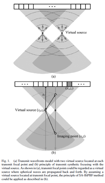 기술적으로 BiPBF는 기존 B-mode 송신 방식을 그대로 유지하면서, 송신 초점을 virtual source로 해석하는 관점을 취한다. 송신 초점에서 방사된 파동을 가상의 점음원으로 간주하면 각 픽셀에 대해 송신 지연과 수신 지연을 독립적으로 계산할 수 있으며 이를 통해 픽셀 단위의 양방향 집속(two-way focusing)이 가능해진다. 여기에 여러 subaperture에서 획득한 RF 데이터를 합성함으로써, 기존 SA의 핵심 장점인 전 깊이에서의 균일한 측방 해상도를 유지하면서 단일 소자 기반 SA가 갖는 낮은 SNR 문제를 효과적으로 완화한다.
