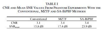 정량 평가 결과, SA-BiPBF는 평균적으로 CNR과 SNR 모두에서 conventional 방식보다 높은 값을 보였다. 특히 SNR 개선은 통계적으로 유의미한 수준이었으나, CNR 개선은 통계적 유의성에 도달하지는 못했다(Table 2.).