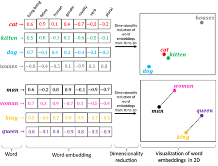 단어들 간에 유의미한 벡터를 뽑아내는 것이다. 비슷한 의미의 단어들끼리 묶어 주는 방법이다. 학습을 통해서 단어 간의 의미를 규정한 벡터를 만들어내고 이를 활용한다.