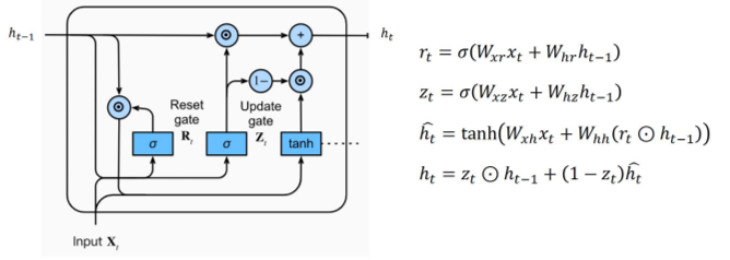 - r_t=σ(W_r x [h_{t−1},x_t]) 여기서 σ는 시그모이드 함수, Wr는 리셋 게이트의 가중치